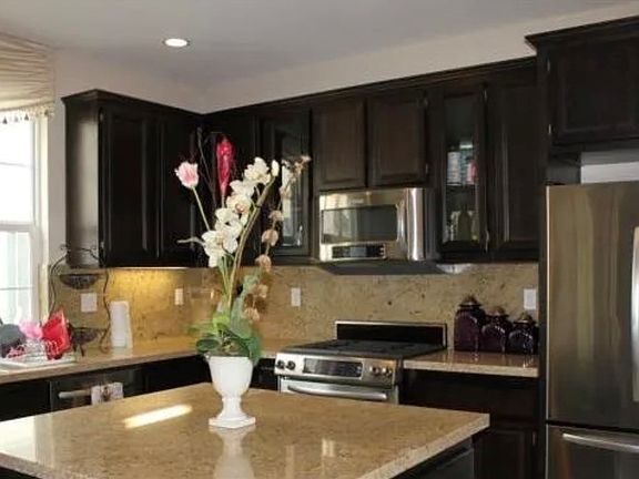 Welcome to Owens Cove at Dos Lagos! This stylish 3-bedroom, 2.5-bath townhome-style condo offers 1,775 sq. ft. of comfortable living in a prime Corona location. The open floor plan features vaulted ceilings, ebony hardwood floors, recessed lighting, and abundant natural light. The upgraded kitchen boasts a center island, stainless steel appliances, custom tile backsplash, tile flooring, and generous cabinet space. A formal dining area flows seamlessly into the living room, with direct access to a private covered balcony.