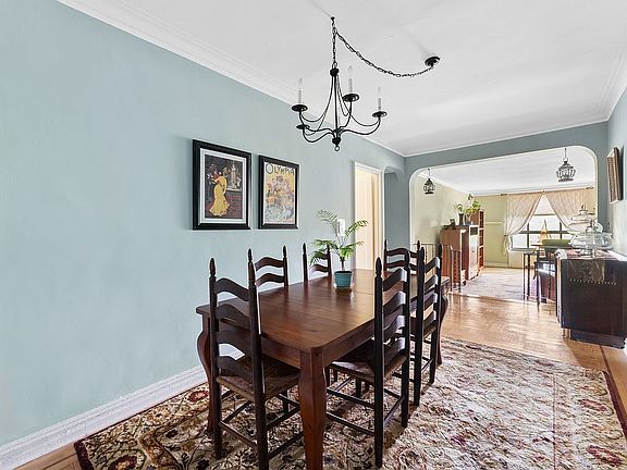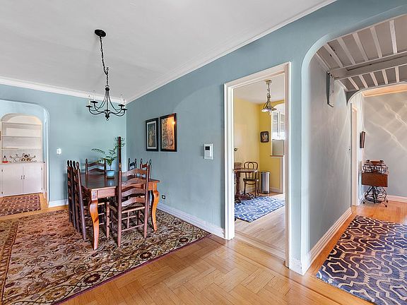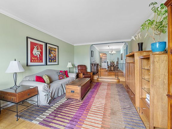 Extra-spacious 2-bedroom home keeps original details of the 1940s and features sweeping views over the hills of Van Cortland Park. The entry foyer opens to a wide gallery toward the sunken living room. There are arched doorways and original parquet floors with inlaid contrasting borders which shine in the eastern sun. Spacious kitchen with farmhouse style cabinets opens to large morning room. Both bedrooms are generously sized, and the master bedroom with en-suite bath features corner windows with wonderful panoramic views of the park. This historic building at the edge of Fieldston is so convenient to the #1 subway at 242nd Street, and near Central Riverdale shops and restaurants. The building is a very short walk of three blocks to the 242nd Street stop of the one train and Broadway buses. Neighborhood standouts nearby are excellent restaurants, bars, coffee shops, gourmet grocery stores, and others including running trails, golf /tennis courses and nearby riding stables all at Van Cortlandt Park. Maintenance is $1,288.