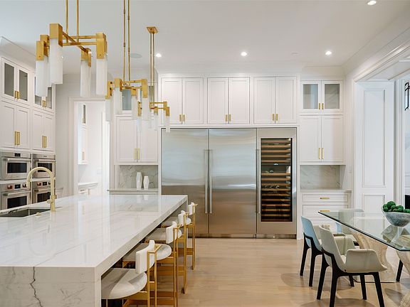 Floor-to-ceiling fireplaceRefined brass hardwareSummer kitchenBack staircaseModern luxuryPrivate officeWaterfall island