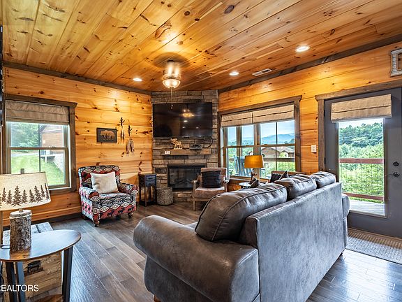 Stunning turnkey luxury cabin in Mountain Shangrila, completed in 2021, is ideally located just off the Spur between Pigeon Forge and Gatlinburg-only about a mile from the Parkway and offers ample space, breathtaking mountain views, and an impressive theater room for unforgettable entertainment. Eden of the Smokies-is a Beautiful 5BR/5BA short-term rental with strong rental potential and upscale finishes throughout. Features include 4 spacious king suites (each with private baths), a dedicated bunk room, sleeper sofa and futon for extra guests, plus a full-size theater room with stadium seating and a game room with multicade and Golden Tee arcade games. Open-concept living area with all-wood interior, custom kitchen with granite counters, stainless steel appliances, and craftsman cabinetry. Expansive covered decks, hot tub, and serene views offer the full Smoky Mountain experience. Enjoy all of this and be just minutes to major attractions, shopping and dining! Fully furnished and rental-ready don't miss this income-producing gem!
