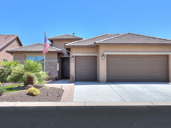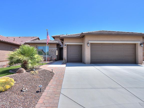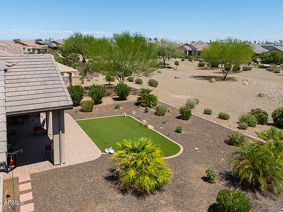 Beautiful MONTECITO model on PREMIUM VIEW LOT! You will love this home from the high end custom upgrades to the professionally landscaped backyard w/gorgeous open views! This popular 2 bedroom + Den home has a split floor plan. Kitchen features 42'' cabinets w/knobs, SS appliances, gas range, backsplash, RO, granite countertops, rollout shelves in pantry, under cabinet & pendant lighting. Spacious Master has 2' ext. Laundry has a full set of cabinets & 2' ext. So many upgrades such as tile master shower, 21 x 22'' tile flooring, 2-tone paint, 5 1/4' baseboards, rain gutters, water softener & golf cart garage w/4 ft ext. The beautiful backyard is located on a premium South homesite w/open views & privacy, extended covered patio w/tons of pavers, gas stub, artificial grass & amazing views