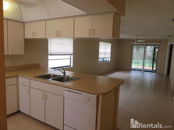 This is a well designed, open 2 bedroom/2 bath home. This is newly tiled and painted throughout. The combination dining room/ living room has sliding glass doors leading to a screened lanai and mostly fenced in back yard. There is a walk in closet in each bedroom, coat closet, linen closet and attic crawl space to fit all your belongings. Amenities include a dishwasher in the kitchen and there is also a 1 car garage with a washer/dryer hook up. You can view our entire availability in the area at www.overseasrealty.com