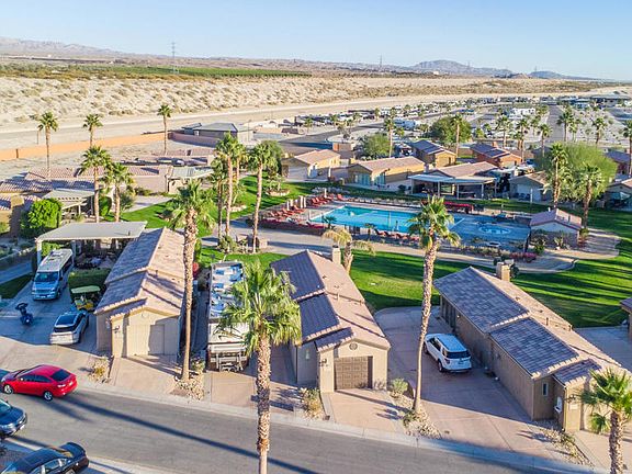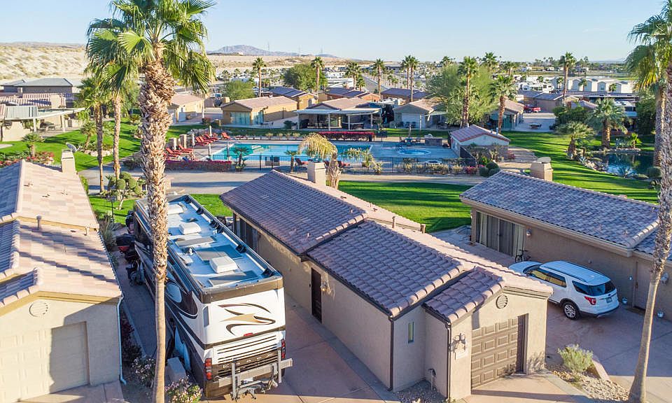 Welcome to The Vineyards Motorcoach Resort, where exceptional living blends seamlessly with stunning surroundings. This beautiful Plan 2 Casita is just steps away from the sparkling pool and offers serene views of a lush green area. The interior of this casita exudes charm and functionality, with an open living area that's perfect for relaxing. Step outside to enjoy the extended patio, an ideal space for unwinding after a swim, thoughtfully designed with natural gas plumbed into the BBQ and fire pit--perfect for hosting gatherings or relaxing under the stars. For added peace of mind, the casita is equipped with security shutters, providing both safety and privacy. The attached garage offers ample parking or the potential for a home office, hobby room, bedroom or extra storage. For those traveling with a Class A RV, the adjacent parking space is fully equipped with hookups for a convenient and comfortable stay. As part of The Vineyards Motorcoach Resort, you'll be immersed in a vibrant, gated community offering incredible amenities. Relax by one of two pools, challenge friends to tennis or pickleball, fire up the BBQ in one of the community grilling areas, or gather around the cozy firepit. The clubhouse and fitness room provide additional spaces to connect and stay active. Surrounded by majestic mountain views and lush landscaping, this community welcomes you to embrace the best of Coachella living whether you bring your RV or simply come to enjoy the lifestyle.
