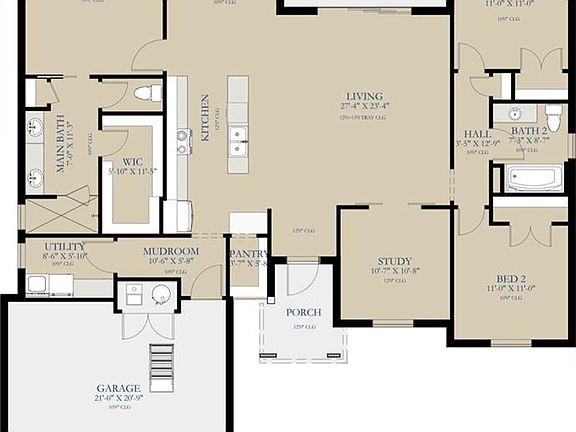 Boasting 1,853 square feet of modern and contemporary design and refined luxury, this home offers 3 bedrooms, 2 bathrooms, and a generous study room. Enjoy impressive 12-foot ceilings throughout the entry, living room, and kitchen. The striking kitchen features a large island and a hidden walk-in pantry. The living room flows seamlessly into a spacious covered patio, thanks to expansive sliding glass doors. The primary suite includes a walk-in shower and closet, with carefully considered design details that strike the ideal balance between style and functionality.