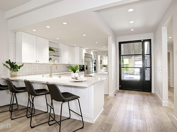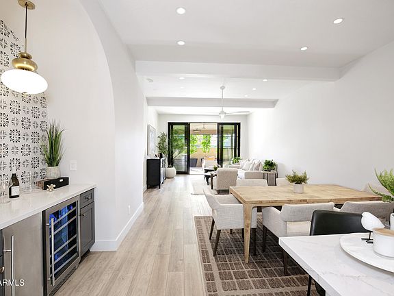 ONE STORYcompletely renovated Townhome located within walking distance of The new Global Ambassador, Steak 44, The Henry, Buck & Rider, AJ's Fine Foods.. The unit backs up to a green space providing privacy on the amazing patio which has overhead heaters, motorized screens and a heated spa. View gorgeous Arizona sunsets from the patio. See separate list of improvements!