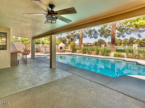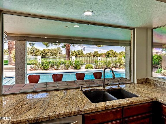 This Stonecreek Golf Course Home is the perfect 4 Bedrm floorplan w/a beautiful Pool/Spa overlooking the Lake at the 1st Green. Home features an open vaulted Kitchen/Family Rm w/picture window views of the lushly landscaped backyard, pool/spa, golf course & lake. The 2-sided fireplace passes thru to the vaulted formal Living Rm & Dining Rm at the entryway. This split floorplan offers a master suite w/views & pool/spa access & 3 large secondary bedrms. Backyard entertaining incl a built-in BBQ, Kiva fireplace & eat-in counter w/swivel seating under the large covered patio. Community features tennis/pickleball courts & walking paths (including on the course in the evenings). Located in one the most sought-after areas, bordering Paradise Valley & within the acclaimed Scottsdale School Dist. This home offers unparalleled convenience to restaurants, shopping destinations, and the revitalizing PV Mall. Easy access to freeways and downtown Phoenix ensures urban connectivity while enjoying the tranquility of a quiet neighborhood.