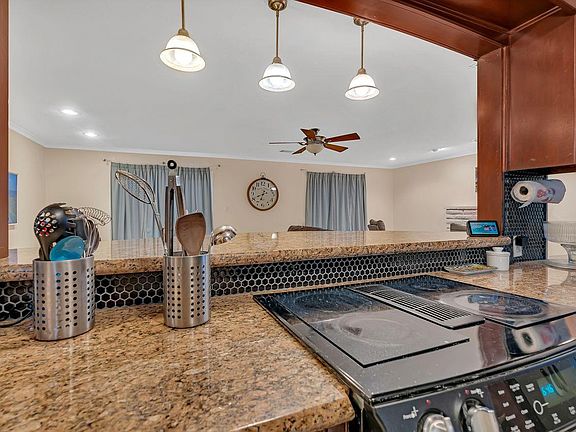 Sparkling poolCharming brick fireplaceRecent upgradesAttractive low-maintenance drought-resistant landscapingGranite countertopsStylish backsplashNeutral tile