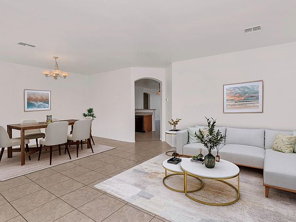 Come see this single-level, 4 bedroom, 2 bath home with tandem 3 car garage. Front door leads to large flowing living/dining spaces. Continue into the open kitchen/eating/family room with access to the back patio. This split bedroom plan has the private primary bedroom and en-suite bath, with dual sinks and separate tub and shower, on one side of the home, with the other 3 bedrooms and the 2nd bath on the opposite side. Interior freshly painted throughout in Dec 2024. Ceramic tile flooring throughout. 2 miles to the 202. This home has great potential, whether you're an owner/occupant seeking a home to make your own or an investor wanting an investment rental.
