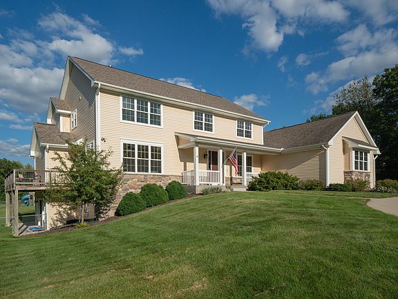 Looking for some wide open space in the country? Come take a look at this stunning AVB built home including an attached in-law apartment on your own 22.5 acres of nature. This home has it all- Open concept main floor w/ stone fireplace, hand scraped hard wood floors, crown molding and 19 ft ceilings. The open kitchen boasts maple cabinets, stainless appliances and granite countertops. You'll find a bonus room, 4 bedrooms with adjoining baths and a 2nd laundry on the upper level. There's a huge wet bar with quartz, wood stove, wine room/office and plenty storage in the finished basement. Don't miss the 10 ft ceilings throughout, whole house generator, water filtration system, geothermal heating/cooling system, and french doors that lead you to the wrap around deck with stunning sunsets. Additional features include Sonos surround sound system on main and lower level plus back patio. Living room stone fireplace is also set up with gas line and can be easily be converted into gas fireplace. Kitchen appliances in main house and apartment include plus both sets of washer and dryer.