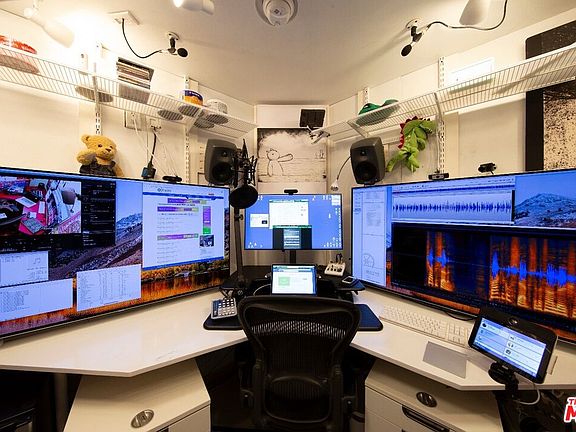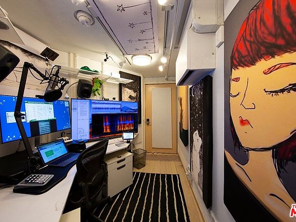 Set on a quiet, tree-lined street in the highly coveted Library Square neighborhood of Sherman Oaks, this custom-built 2008 estate offers exceptional privacy, versatility, and a world-class three room recording studio for audio and video. With 3,168 sq ft of living space, the two-story home features 6 bedrooms and 4 bathrooms 3 beds/2 baths on each level making it ideal for either single family, multi-generational living, rental income or live/work versatility. The rear structure boasts a four hundred square foot studio space above with full kitchen and bath and the recording facility below, adding an additional bedroom and two more baths for a total of 7 bedrooms and 6 baths. Both levels in the main house are flooded with natural light and offer soaring 10 ft ceilings, recessed lightin and a bright, open feel. Finishes include rich hardwood and travertine floors, modern kitchens with granite countertops, top-of-the-line stainless steel appliances, walk-in pantries, breakfast bars and a cozy fireplace. Bathrooms showcase stone flooring and sleek frameless glass shower surrounds. The entire home is "smart home equipped" - almost every dimmer, ceiling fan, door lock, HVAC, alarm sensor and irrigation control can be remotely supervised. Each level enjoys its own primary suite and private entrance, with easy interior access between floors as well as exterior entry. Washer and dryer have access located on the shared first floor. Outdoors, the gated property includes a large grassy backyard with mature fruit trees, room for a pool and additional gated parking. The detached 2-car garage has been transformed into a state-of-the-art professional grade multi-room recording studio, complete with a dedicated bath/shower and high speed satellite and fiber-optic internet service. Above it is a 400 sq ft studio with kitchen, bath and its own dedicated ground level laundry facilityperfect for a home office, guest, or a creative retreat. A rare opportunity to own a turnkey income-generating property or a flexible family estate in one of Sherman Oaks' most desirable neighborhoods. Conveniently close to renowned dining, outstanding shopping and just a short drive to the Westside, beaches and freeways. Create your California lifestyle.