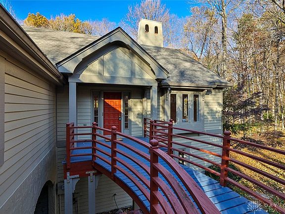 Discover an exceptional opportunity in “The Ridge,” a private West Kettering community near the NCR Country Club and moments to Moraine Country Club. This attached home offers incredible space, privacy, and potential for the next buyer to refresh to their personal style. A charming, elevated walkway leads to an inviting front entrance and gracious foyer, complete with elevator access to all three levels. Inside, find soaring cathedral ceilings, transom windows, and a double-sided gas fireplace all creating a dramatic yet warm great room/ dining setting. The kitchen overlooks the serene wooded backdrop and includes a turret-style breakfast nook surrounded by nature views. Enjoy outdoor living on the newer, expansive two-tier Trex deck, accessible from both the main level and the walk-out lower level. Just past the hallway bathroom, is the first-floor primary suite featuring a spacious walk-in closet and full bath. A large laundry/mudroom conveniently connects to the garage. The finished lower level offers abundant gathering space with a wet bar, billiard room, two bedrooms, a cedar closet, and additional bathrooms. Upstairs, the third level provides impressive storage or the perfect canvas for a future finished retreat, complete with another cedar closet. Thoughtful design elements, exceptional bones, and an unbeatable location make this home the perfect place to reimagine and elevate. A rare find with remarkable potential in one of Kettering’s most coveted communities.