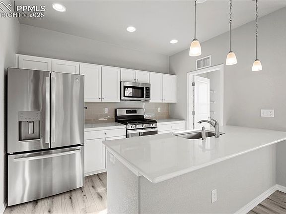 Welcome to  a move-in ready, modern ranch-style home built in 2022 that offers the perfect blend of low-maintenance living, contemporary design, and smart functionality.    With 2 spacious bedrooms and 2 full en-suite bathrooms, this 1,125 sq ft home is ideal for first-time buyers, downsizers, or anyone seeking an efficient and stylish space. The open-concept layout features 9-foot ceilings, granite countertops, stainless steel appliances, and a bright living area perfect for relaxing or entertaining.    Enjoy the convenience of a private fenced backyard, central A/C, a full laundry room, and a 2-car attached garage. Located in Chapel Heights, this home includes access to a private community fitness center and is minutes from Peterson, Fort Carson, shopping, and Powers Blvd—offering easy access to everything Colorado Springs has to offer.    Unlike older homes in the area, this 2022 build requires no updates or renovations—just move in and enjoy. The thoughtfully designed floor plan offers two private suites, making it great for guests, roommates, or a home office.    Don’t miss your chance to own a newer home with modern finishes and low-maintenance living in one of Colorado Springs’ growing neighborhoods. Schedule your showing today!