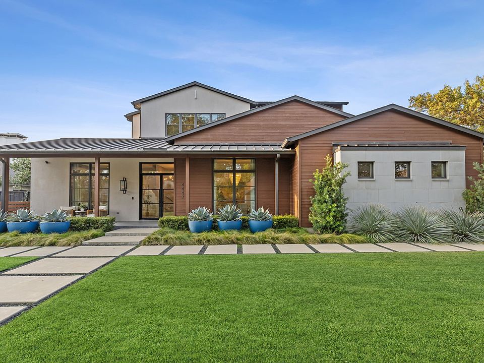 Stunning transitional Bluffview estate on a .402-acre lot offers unmatched amenities and style, creating the ultimate sanctuary for relaxation and entertainment. The residence features 12-foot ceilings with abundant natural light, a formal dining room, living room, and an open family room with dual designer light fixtures and a limestone gas fireplace. Perfect for entertaining, the family room includes a formal bar with a temperature-controlled wine room and Sub-Zero ice maker. Dual sliding steel doors open to a covered outdoor loggia with remote screens and a landscaped backyard, pool, and koi pond. The culinary kitchen includes top-of-the-line appliances: Sub-Zero refrigerator and freezer, Wolf range with double ovens, and two Bosch dishwashers. The walk-in pantry features a Sub-Zero beverage refrigerator and two refrigerator drawers, while the quartzite island and breakfast area offer space for cooking and hosting. The spacious downstairs primary suite is a retreat with a gas fireplace, sitting area, and oversized bathroom with dual vanities, garden tub, walk-in shower, and two expansive closets. The first floor also includes an ensuite guest bedroom or office, mudroom with built-ins and desk space, powder bath, and utility room. Upstairs, a game room with built-ins and a Sub-Zero beverage refrigerator, plus three ensuite bedrooms with walk-in closets, provide space for family and guests. Enjoy indoor-outdoor living with a covered loggia featuring electric screens, seating, dining, a gas fireplace, and an outdoor kitchen with built-in Alfresco grill, ice maker, and prep space. Additional amenities include a negative-edge pool, linear fire feature, surrounding deck, and koi pond. The 3-car garage has epoxy flooring, with one bay air-conditioned for use as flexible space. A gated front yard enhances privacy and security. Built in 2018, this home embodies the elegance and functionality designed for those who value exceptional craftsmanship and luxurious living.