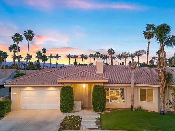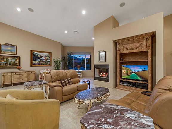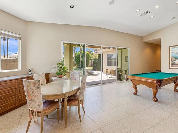 Exceptional 4-bedroom, 3.5-bath custom home located in the highly desirable central Palm Desert community of The Grove with beautiful mountain views. This well-designed residence offers an open-concept layout with 12-foot double sliding doors that create a seamless indoor/outdoor flow and showcase beautiful mountain views.The home features a spacious primary suite, a private en-suite bedroom, and two guest bedrooms, plus an additional powder room for convenience. The gourmet kitchen boasts custom cabinetry, granite countertops, premium appliances, and abundant storage throughout, including a large laundry room with extra cabinets. The main living area boast high cathedral ceilings! Enjoy desert living at its best with a private pool and spa, perfect for relaxing or entertaining. Additional highlights include 8-foot interior doors, energy-efficient solar system, and a 2 car garage with ample storage space.Located close to shopping, world class dining, world class golf, and top-rated schools this home combines quality craftsmanship, comfort, and an ideal Palm Desert location.