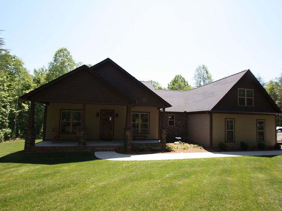 Adorable move in ready craftsman built home on 4 acres surrounded by trees and backdrop of the Blue Ridge Mountains. The interior offers an open kitchen to great room with granite counter tops, gleaming hardwood floors with a stack stone fireplace from floor to ceiling to die for! Home is cheerful with tons of natural light shining thru and expansive views out to the private, lush yard space. Two fire pits and a space where land has been cleared along with a path leading to. Home is serene yet close to town and many attractions including Campbells Covered Bridge! Unfinished attic space upstairs could be a 4th bedroom or bonus room! Set up your private showing today as this beauty won't last long.