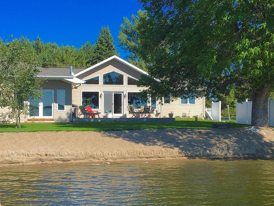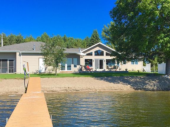 Sit back and enjoy the view in this 3 bedroom 2 bath open concept home on the north side on Little Pine Lake- boasting 100 feet of shoreline with a flawless level elevation, awesome sandy beach an excellent hard sand lake bottom, along with being the best walleye lake in the area. Home features: large wall of picture windows with patio door leading to lakeside deck, gas fireplace, lakeside master bedroom with large walk in closet, laundry room, attached double garage with lakeside service door and lawn irrigation system.