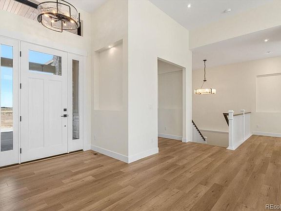Welcome to an extraordinary new custom home unlike any other—set on 10 pristine acres just minutes from downtown Parker, Colorado. This thoughtfully designed ranch-style residence blends timeless craftsmanship with modern luxury, capturing sweeping views of Pikes Peak from nearly every room. Inside, the open-concept layout features 4 bedrooms and 5 bathrooms, including 3 main-level bedrooms with private en-suites, plus a sophisticated study with custom built-ins. The chef’s kitchen is a true showpiece, offering high-end appliances, generous counter space, and a built-in BBQ that makes entertaining effortless. A gas fireplace anchors the great room, creating a warm and inviting atmosphere enhanced by luxury vinyl plank flooring throughout the main living spaces. The primary suite is a private retreat, complete with its own patio, spa-like bathroom with heated floors, and an oversized walk-in closet with custom built-ins. Downstairs, the walk-out lower level is designed for entertainment and relaxation, featuring a wet bar, lounge area, and a state-of-the-art True Golf simulator with drop-down floors—perfect for year-round enjoyment. Outdoor living is equally impressive, with a pergola-covered patio that showcases the property’s expansive setting and unbeatable mountain views. Additional highlights include an elegant entrance foyer, an oversized 3-car garage with a 220V outlet for electric vehicles or hobby use, and custom details throughout. With its incredible setting, thoughtful floor plan, and unparalleled finishes, this home sits on the best lot in the neighborhood—offering the ultimate combination of privacy, style, and Colorado living at its finest.