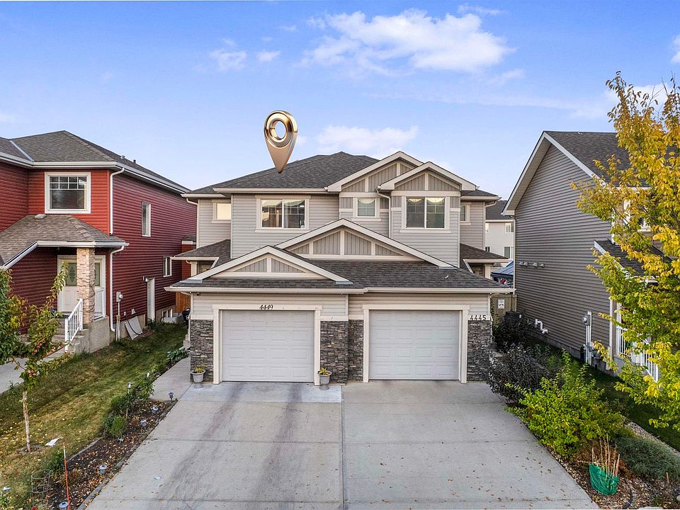 Welcome to Maple Crest in Southeast Edmonton — a beautiful duplex with no condo fees! This thoughtfully designed home offers everything you need for comfortable family living, work, and leisure. From the landscaped front yard to the bright and open living space with large rear windows, every detail invites you to feel at home. The modern kitchen is perfect for both everyday meals and hosting dinner parties. Upstairs, you'll find three spacious bedrooms and two full bathrooms, including a primary suite with a private 3-piece ensuite and a walk-in closet. Enjoy the convenience of being just minutes from the Anthony Henday, schools, public transportation, daycares, shopping, and parks. Nestled next to walking trails and a playground, this home is located in one of Edmonton’s most vibrant and growing communities — truly a perfect place to call home.