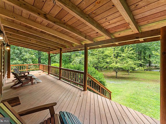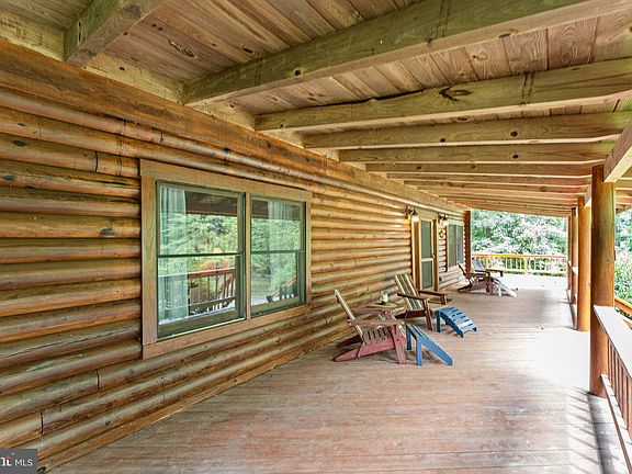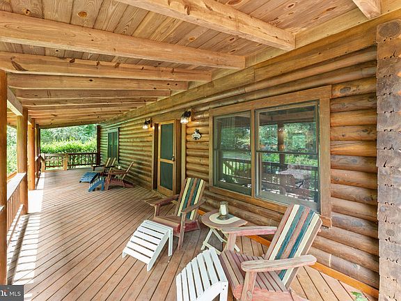 A true Red Cedar Log home nestled on 3+ acres with Pond access. Pine floors, vaulted ceilings, fully finished 3 levels. Wrap around fron porch that extends to the back of the home. Stainless appliances, granite counter tops. Metal Roof. Open Concept throughout. Hardwood Pine flooring on main level and upper level. Lower Level has carpet. Log Finished on 2 upper levels. Wood burning stove on the main level and also on the finished lower level. Walk out basement to covered porch. Upper level loft currently used as family room. Logs were treated and refurbished 9/22. There is a community pond with pier access and water/lake privileges. There is also access to the river and a common area to have picnics. Furniture can convey with acceptable offer.