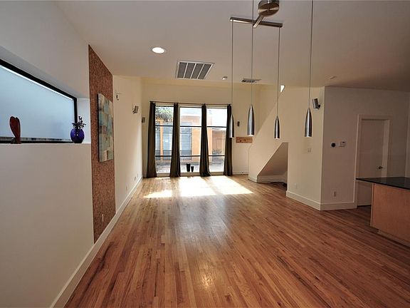 Location, Location! Wonderful Gated Community Contemporary 2 bedroom with study, 2/1 bath & 1 car attached garage with extra parking space outside this corner unit. This beautiful home has been recently painted, has amazing hardwoods down stairs & new carpet on the stairs & in the 2 bedrooms, high ceilings & the floor to ceiling windows give lots of natural light. Spacious kitchen with lots of cupboard space, granite island, stainless steel appliances, gas cooker, new microwave.Open plan living to the large spacious living room & dining room, modern lighting. Open the back sliding doors out to a nice back yard with space for a small tables & chairs & your BBQ. Convenient Rice Military Location Near Memorial Park, Washington Corridor, Downtown, Heights and I 10. Great bars & many gourmet restaurants near by. Tenant to maintain yard.