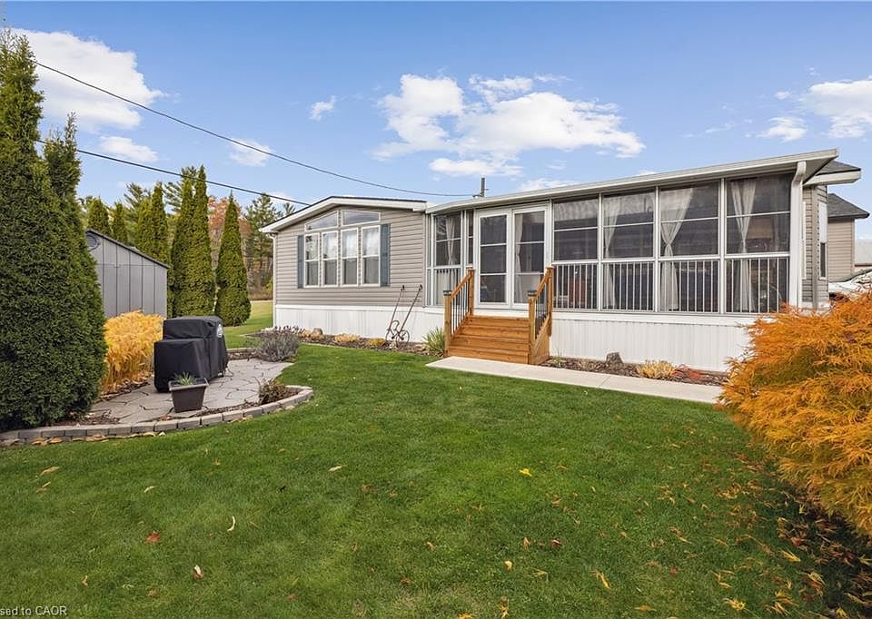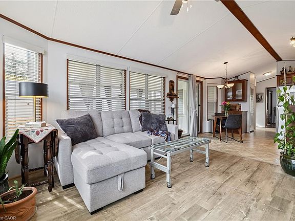 Welcome to 4449 Milburough Line #13 Spruce in beautiful rural Burlington! This charming 2-bedroom bungalow is located in a quiet, well-kept year-round community surrounded by nature. Offering over 800 square feet of comfortable living space, this modular home features an open-concept kitchen and living area, a bright spacious sunroom perfect for relaxing. Enjoy the peace and privacy of rural living along with access to parks, golf courses and trails. This unit has durable vinyl exterior and newer roof. Residents also enjoy access to a community inground pool and recreation centre. An ideal opportunity for downsizers, first-time buyers, or anyone seeking an affordable home in a serene setting. Land lease includes water, property taxes, and community maintenance. Flexible possession available.