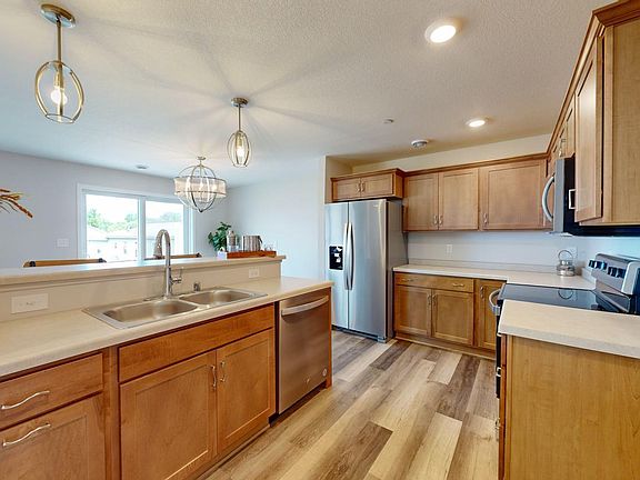 Wow! At last an upscale townhome for under $300K, 3 bedrooms, 3 baths, primary suite, kitchen center island, stainless appliances, fireplace, laundry located by bedrooms, 2 car attached garage and extra parking. Affordable living at its best, with a convenient location just off Hwy 52 in Zumbrota. A short commute to Rochester or Twin Cities!