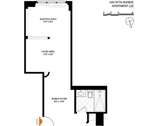 Welcome to Apartment 22E at Fifth Avenue Tower, a premier studio residence designed for the discerning individual seeking an unparalleled urban living experience. This exceptional home offers breathtaking, sun-drenched views of the Manhattan skyline from its southern exposure, creating a vibrant and inspiring atmosphere.