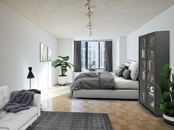 Welcome to this spacious alcove studio in the reputed Fifth Avenue Tower Condominium! Apartment 28E offers stunning southern city views and is thoughtfully designed with a dining area, a large walk-in closet, and an additional closet for plenty of storage. The interior features parquet floors, a sleek marble bathroom, and a well-appointed medium-sized kitchen. Enjoy exclusive access to the building's exceptional amenities, including a fitness center on the 33rd floor and a beautifully landscaped rooftop terrace wonderful for relaxing, sunbathing, or taking in the breathtaking 360 views of New York City.