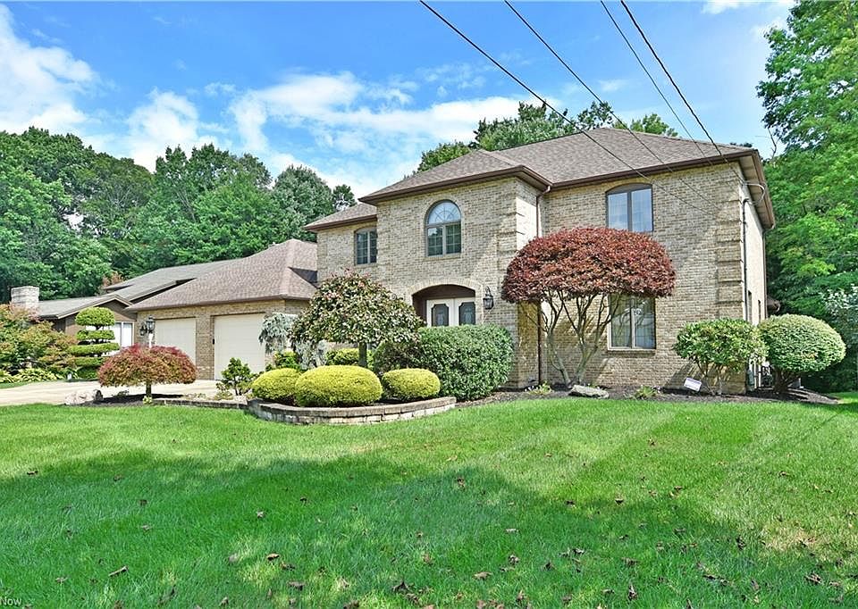 A magnificent, all-brick Hubbard home featuring three floors of stunningly finished living space and an absolute-must-see second story rear patio! This five potential bedroom residence includes four, second story rooms and a fifth first floor bonus room, currently upfitted as a home office. With three and a half baths sprawling the layout and a masterful, grand foyer, its truly one to behold. The handsome structure stands proudly, showcasing elegant landscaping as concrete walkways wrap around to the elevated patio space and covered pad below, easily accessed from the walk out basement. The tiled foyer spills into an elegant family room and equally tasteful formal dining area before transitioning into the central kitchen. Stone look countertops meld with sculpted cabinetry and stainless appliances while informal dining enjoys natural light and backyard views. Around the corner, a bespoke living room offers tall ceilings and a towering brick mantle, offset by built-in cabinets and shiplap ceiling. First floor laundry adds to the perks near a half bath. Upstairs, the quartet of spacious rooms circle the landing along with a brightly lit full bath. The oversized master suite enjoys stepped ceilings, a large walk-in and a breathtaking private bath with glass and tile shower. The basement provides gym, rec and lounge areas with a full kitchen and bar top seating.