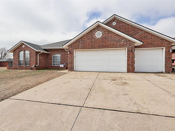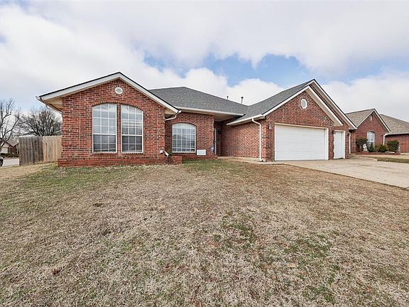 This updated 4-bedroom; 2 bath; 3 car garage home located on 2 corner lots in the Weston Addition in Yukon offers a stylish blend of comfort and convenience. Ideal location for shopping, restaurants, and just 2 miles from 1-40 and the Kilpatrick Turnpike. Mustang schools. The open floor plan seamlessly connects the eat-in kitchen w/ wrap around breakfast bar to living room #1, making it the perfect space for entertaining. See yourself lounging on a rainy day in oversized living room #2. The large master is a spa like retreat with a connected bathroom that includes a walk-in waterfall shower and his/her closets. Three other bedrooms round out this living space. Fireplace with built in bookshelves. Timeless woodwork and ample storage throughout. This home boasts a large yard with covered patio that is perfect for grilling. Recent renovations include granite countertops in the kitchen and master bathroom, fresh paint, wood tile, updated lighting, new carpet in master bedroom and living room, new hot water tank, fence, 6 person storm shelter in the garage, and 30-year roof. Hot tub and all stainless-steel appliances are negotiable with the right offer. Seller will give a 2K flooring allowance with acceptable offer. Won’t last long! Must see!