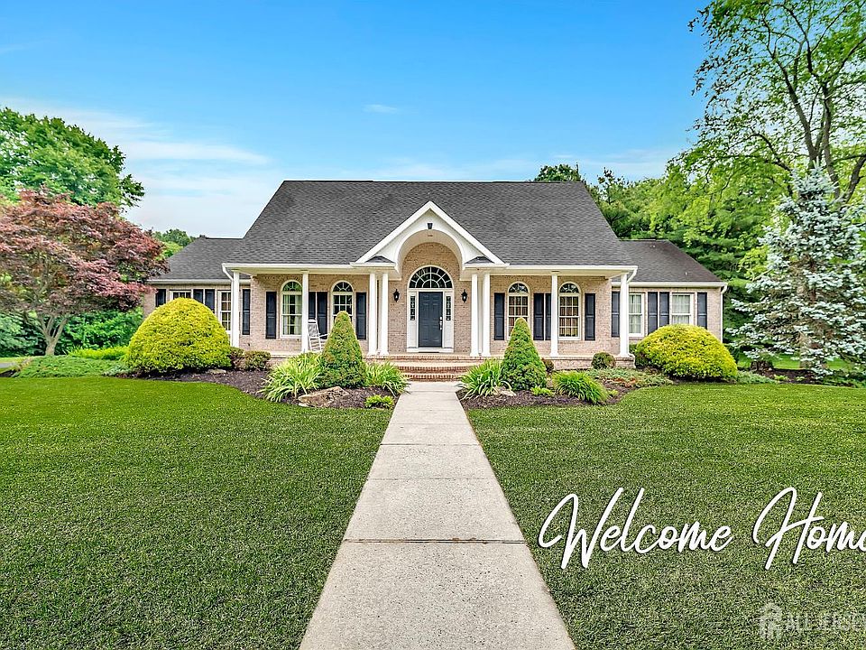 Magnificent, custom-built 3-bedroom, 2.5-bath Colonial home nestled on a serene, private 2-acre lot in highly sought-after Monroe Township. This meticulously maintained residence offers an unparalleled combination of elegance, privacy, and comfort, making it an ideal investment for buyers seeking long-term value. The home features a formal dining room, formal living room, and a family room with a gas fireplace, pocket doors and custom designed window treatments using designer fabric. The large kitchen includes an island, and a separate eating area. Set on a professionally landscaped lot, this property is filled with natural light, highlighting gleaming hardwood floors throughout and elegant crown molding that adds a timeless touch of sophistication. The primary bedroom, located on the main floor of the home, boasts a private ensuite with stall shower and tub/shower, a large WIC, and built-in shelving making it an option for extended family living. The full basement, with nearly 8-foot ceilings, offers additional potential for a workout area, kids' play area, home theater, and more. A new AC and heating unit installed in 2020.There is a 2-car attached garage with garage door openers and convenient entry to the home. The expansive backyard features a patio with enough space for a pool or outdoor kitchen, making it perfect for both quiet retreats and lively gatherings. A central station security system is additionally included. Experience the best of both worlds with secluded living while being close to local developments. Enjoy top-rated schools, easy access to major highways, and proximity to fine dining, shopping, and recreational activities. One hour from NYC; hour from Philadeliphia and 25 minutes from Newark Airport. Home is Back on the Market with no fault from the seller.