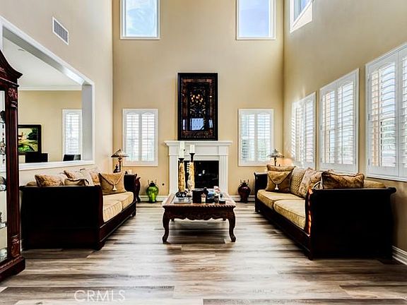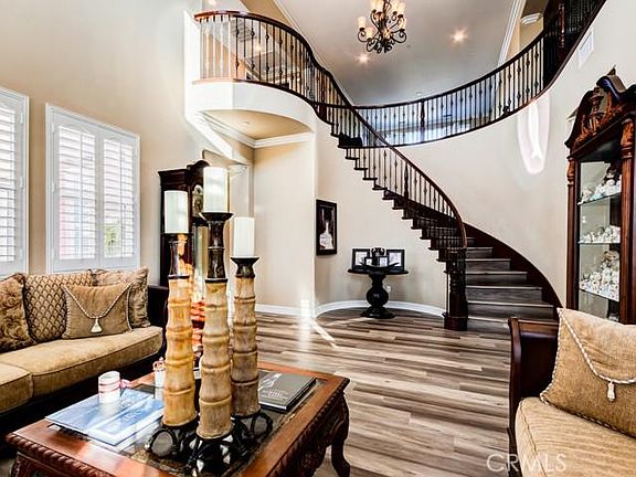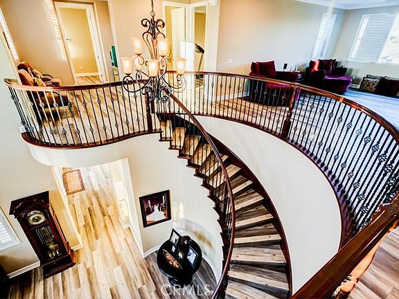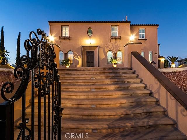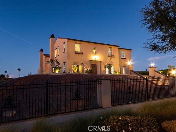 Exquisite Gated Stellan Ridge Estate with 360 degree "Airplane" views! This is one of the highest points in the Overlook area with sweeping views all the way from San Bernardino to Downtown Riverside all the way to Ontario! This very highly appointed home features 6 bedrooms, 6 1/2 baths & a Four Car Garage! 5 of the bedrooms are ensuite with private baths! Additional rooms include formal Living Room with soaring 20 foot ceilings, Library/Music Room, Game Room with separate private stair case, Bonus Room/Theater, Formal Dining Room, Expansive Family Room, Guest Suite/Granny Suite, Butler's Pantry & Wine Room with Wrought Iron Door. Some of the many amenities include Basswood Shutters throughout, Crown Moulding throughout, Seven French Doors, Brand New Luxury Vinyl wood look flooring, 2 Wrought Iron staircases (front & rear of home) Grand Front Staircase is Sweeping Spiral Wrought Iron with Cherry Wood Handrails just off the formal front Foyer, Decorator Interior Paint, Raised Panel Cherry Wood Cabinets, Granite Counters, Built in GE Monogram Stainless Appliances including Built In 48 Inch Fridge, oversized Center Preparation Island with Bar Stool Seating, Veggie Sink & Decorator Pendant Lights above Island. The Exterior is equally impressive, large enough for future pool, tennis court, etc. with brand new exterior paint, stamped reinforced concrete, large Viewing Deck off the master which doubles as a solid cover below, Outdoor Gas Fireplace with seating area, pre-plumbed gas & electric for outdoor kitchen, long concrete driveway with concrete RV/Boat access area in addition to ample driveway parking and large 4 car garage. The front yard is private & secure with automatic remote controlled and panel controlled gate! Don't miss this opportunity to live in Riverside's most desirable Executive Neighborhood!