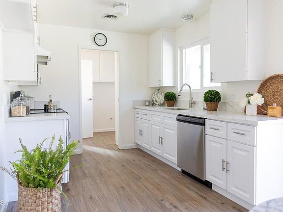 Welcome Home to Fillmore with this delightful residence situated just less than a mile away from the vibrant downtown area boasting an array of shops and restaurants. This charming 3 bedroom, 1.5 bath home offers a host of modern amenities, including fresh interior paint, recently installed quartz countertops and cabinetry in the kitchen, new dishwasher, and updated light fixtures. Laundry room conveniently located off the kitchen. Additionally, the property features new rain gutters, enhancing its functionality and aesthetic appeal.Outside, the meticulously landscaped yard creates a picturesque setting, complimented by an oversized 2-car garage and concrete patio perfect for outdoor gatherings. Room for RV parking, and your own private backyard sports court. The picturesque San Cayetano Mountains, which dominate the skyline to the north, can be seen from the home and backyard. With their rugged beauty and proximity to Fillmore, the mountains offer stunning views and recreational opportunities. They contribute to the scenic charm of the area and provide a backdrop for outdoor adventures such as hiking, camping. Immerse yourself in the quintessential Ventura County lifestyle, as Fillmore provides easy access to nearby locations such as Santa Clarita, Thousand Oaks, Ventura, offering an abundance of recreational opportunities, beaches, and shopping destinations. Enjoy the tranquility and convenience of small-town living while still being within reach of major urban centers and coastal delights.