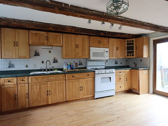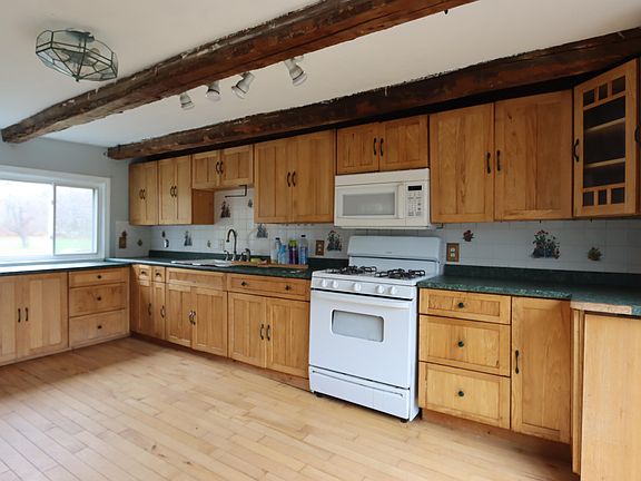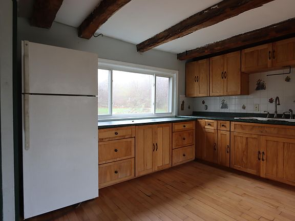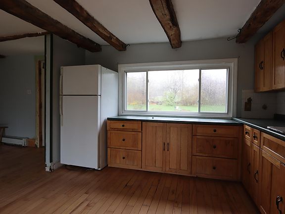 This 1860 farmhouse has 7 rooms, 4 bedrooms, and 1 bath. Boasts open concept kitchen/living room with hardwood floors, small deck off kitchen which overlooks 4.5 acre lot of fields and woods. Bring your ideas to bring this property back to what it once was. In need to renovation. Has pellet stove in living room.
