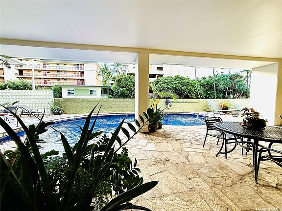 to stay/live in the heart of Waikiki, Hawaii! This building offers a cozy swimming pool and relaxing seating area.