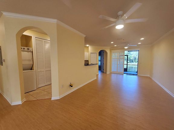 Ground-floor condoDesignated covered parking spotOpen floor planCustom plantation shuttersBamboo and tile flooringCrown molding