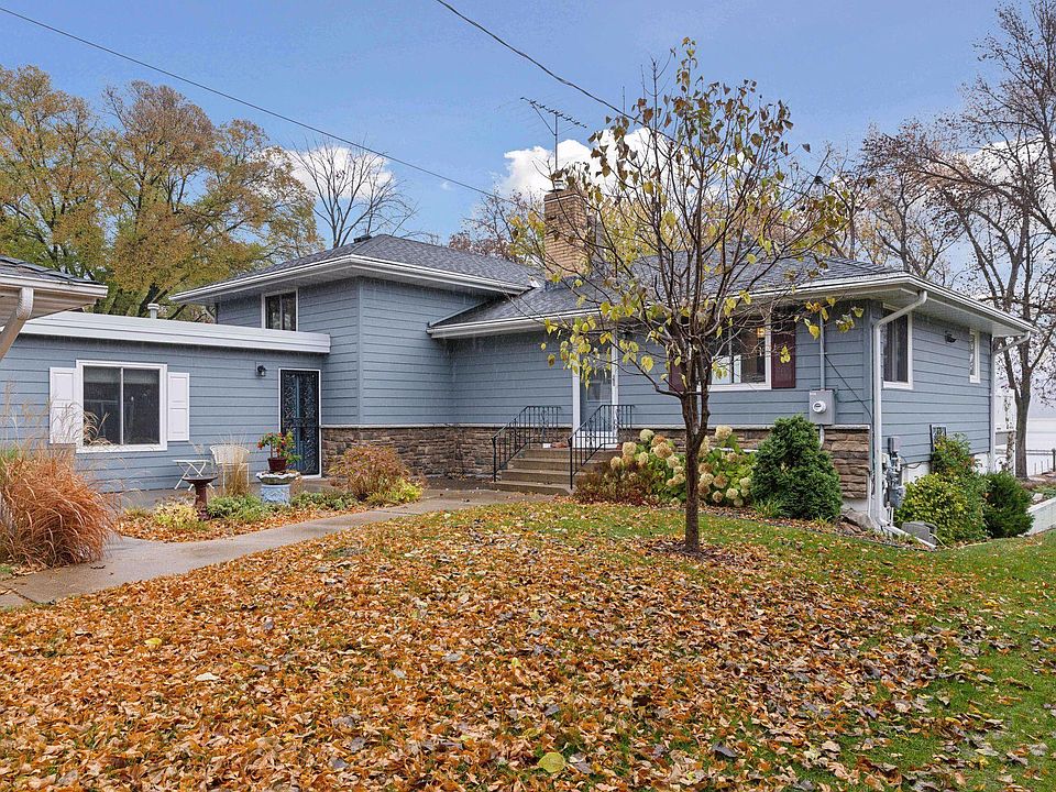 This exquisite 3-bedroom, 3-bath charmer offers a rare blend of comfort, elegance, and stunning natural beauty. Nestled along the tranquil banks of the Saint Croix River, the property boasts panoramic, uninterrupted views from nearly every angle, including a sprawling grass pier that invites you to step right into riverfront living. With the perfect setup for adding a private dock, this home is a water lover’s paradise. Inside, the main level exudes warmth and sophistication, featuring gleaming cherry hardwood floors that complement the spacious, open-concept living areas. The gourmet kitchen has been thoughtfully updated with high-end finishes, while the beautifully renovated baths provide a spa-like experience. The living room, with its plentiful windows, is the perfect place to soak in the spectacular river views, while three inviting fireplaces—two gas and one freestanding wood stove—offer year-round warmth and ambiance. Step outside onto the newer Trex deck to watch the river traffic glide by or enjoy quiet moments while surrounded by the serene beauty of nature. The home is enhanced with durable, stylish LP Smart Siding, providing both elegance and peace of mind. The expansive lower level is ideal for entertaining, featuring a large family room, a full second kitchen, and a cozy four-season sun porch that flows seamlessly into the private patio and lush yard. Whether you're hosting a gathering or simply enjoying the solitude, this home offers the perfect backdrop for a life well-lived by the river.