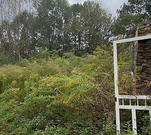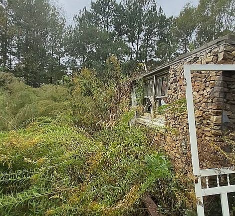 Huge 2 acre corner lot on a hill. Fire damage so property needs FULL DEMO. Build a two story house (or two) but stay totally secluded from any neighbors. Possibilities are endless with this gem! Minutes from shopping in a great community. All you need is a little imagination.