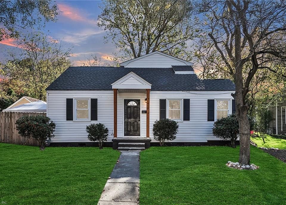 Step into this beautifully updated Cape Cod in Norfolk, featuring 3 spacious bedrooms and 2 full bathrooms. The fully equipped kitchen showcases BRAND NEW STAINLESS STEEL APPLIANCES, GRANITE COUNTERTOPS & ISLAND, ceiling height cabinets with elegant crown molding and decorative backsplash. Luxury vinyl plank flooring enhances the main living areas, while soft carpeting creates cozy comfort in each bedroom. Enjoy two fully updated bathrooms, each showcasing stylish tile surrounds, modern fixtures, and refined details. Newer roof, siding and windows. Large fully fenced private backyard for outdoor entertaining. Conveniently located near I-64, Sewells Point Golf Course, and Joint Expeditionary Base Little Creek-Fort Story, this home blends character, comfort, and accessibility.