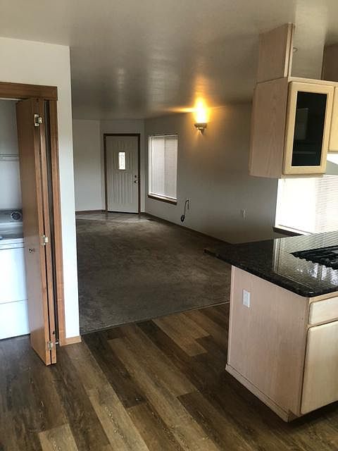 Nicely updated 3 level townhouse for rent on the hillside overlooking historic downtown Chehalis. 1400 square feet of living space as well as an attached 2 car garage. 3 bedrooms, 2 full baths; 1bedroom and bath with stand up shower are on the main floor, along with the living room and kitchen. 2 bedrooms and bath with a tub/shower are upstairs. One bedroom has a walk in closet. On the bottom level, under the kitchen, is the 2 car garage. You enter the garage off the alley and come up stairs into the living room. The garage is enclosed with a remote door opener. Three years ago, all new carpet was installed, all fresh paint, new granite countertops and new stainless appliances. The range is a built-in gas unit. Gas heat and instant-on hot water. Gas dryer, and electric washer are included, they are in a closet off the kitchen. Covered balcony off the kitchen. There is no yard, so this is a no pet and no smoking unit. Application fee is $35 per adult to cover background and credit check, damage deposit is $2000. Last month rent is not required, 1 year lease required. Income requirement is 3 times the monthly rent. Available for viewing September 6 . All utilities are the responsibility of the tenant. Outside maintenance is the landlord's responsibility. Extra off street parking spot is available for guests at the front of the building.