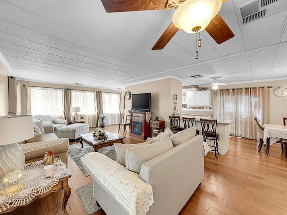GREAT OPPORTUNITY!! Charming Remodeled Manufactured Home in a 55+ Community – Chula Vista. WELCOME to this beautifully remodeled 2-bedroom, 2-bath home located in the heart of Chula Vista! This cozy and stylish residence features: Real wood flooring in the living room, dining room, kitchen, and hallway. Updated kitchen with granite countertops. Spacious primary bedroom with en-suite bathroom with tile flooring and convenient walk-in shower. Relaxing tub in the guest/hall bathroom with tile flooring. Additional sunroom. Private shed for extra storage in the back patio. Energy-efficient tankless water heater. Heated community pool (May–October). Large clubhouse with tables and chairs—ideal for meetings and private gatherings at no cost to owners. Seller is replacing a new carpet front porch deck, stairs and new railings at front porch and back. This peaceful and well-maintained 55+ community is centrally located near shopping malls, fast food, supermarkets, trolley station, and more! Important: All buyers must be approved by the park. Don't miss out on this fantastic opportunity to enjoy comfort, convenience, and community living!