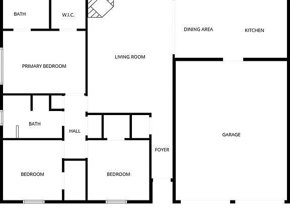 Beautifully updated home with mature trees. This renovated home has an updated kitchen with beautiful stone counters, modern stainless appliances, stainless farm sink, beautiful custom cabinets. Kitchen and dining area are open to the living offering an open concept. The living has vaulted ceilings and a wood burning fireplace. The primary and secondary baths have been renovated. The primary has a large tub shower. Recently replaced roof, newer windows, newer sliding door, newer air conditioner. Full size laundry, two car garage, covered patio, outdoor storage building.