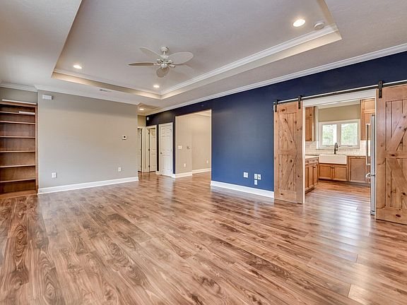 Custom 1400 sq. ft. home with LVT and tile flooring, granite, trey ceilings, stainless steel KitchenAid appliances, washer, dryer, one and a half car garage with workshop, stamped concrete patio and front porch. Primary has tiled walk in shower and two walk in closets. Backyard is fenced for dogs.