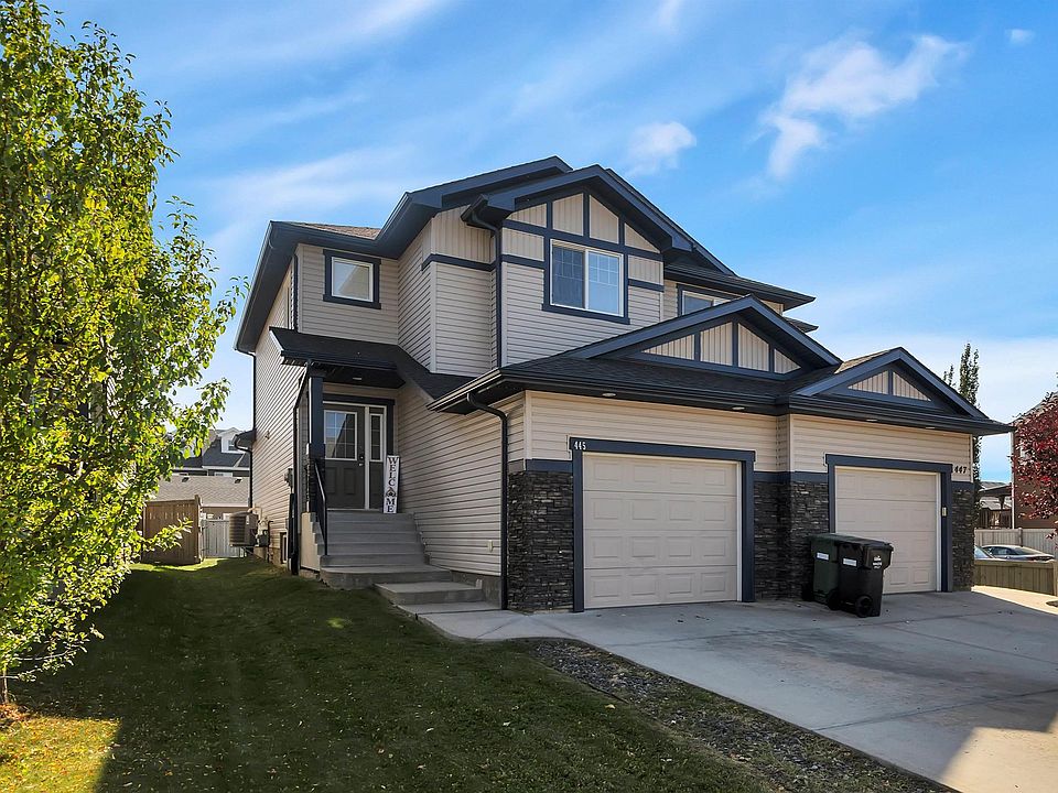 This stylish half duplex offers the perfect blend of comfort, functionality, and modern design. Featuring a SINGLE ATTACHED GARAGE with EXTRA REAR PARKING, this home is ideal for families, professionals, or anyone seeking a well-appointed space in a family community. Step inside to an open concept main floor that’s filled with natural light. The contemporary modern paint colours create a fresh, welcoming atmosphere, making it easy to move right in. Upstairs, you’ll find three spacious bedrooms, including a large primary suite with walk in closet & ensuite, along with convenient upstairs laundry and two and a half bathrooms to accommodate the whole family. A NEW WASHER make laundry day a breeze, while new CENTRAL AIR CONDITIONING ensures comfort all summer long. The unfinished basement provides endless opportunities—whether you’re dreaming of a home gym, rec room, or extra storage space. Outside, enjoy a SOUTH FACING backyard, perfect for gardening, barbecues, or simply soaking up the sun.