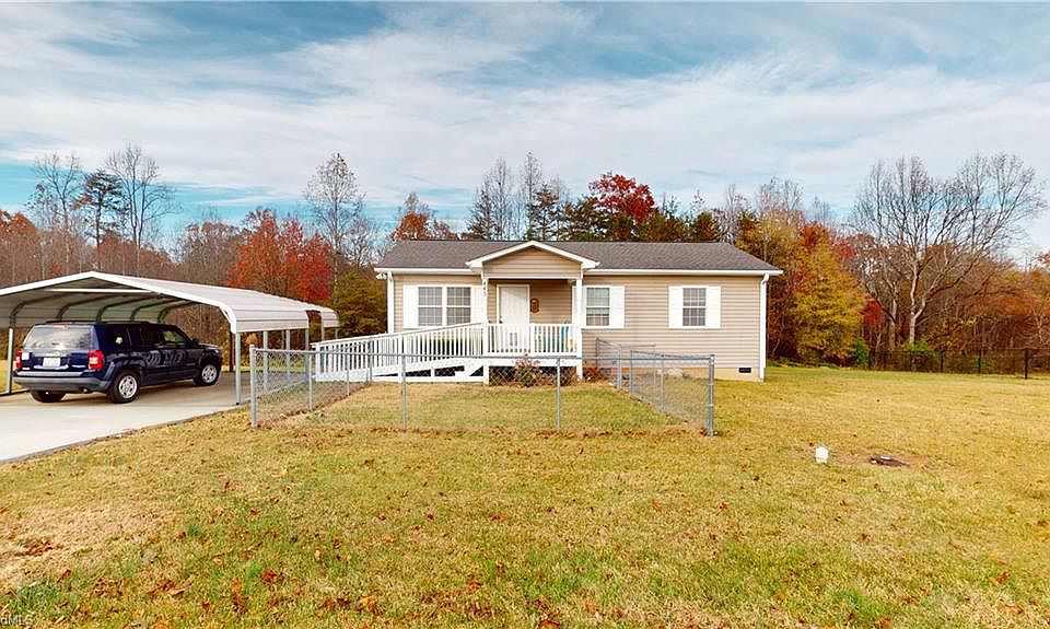 Charming one-level home on a cleared 0.5-acre lot, featuring a paved driveway, carport, and a partially fenced yard perfect for pets, play, or gardening. Enjoy easy access with a freshly painted ramp leading to the covered front porch. Inside, the open floor plan creates an inviting space for gathering, with 3 bedrooms and 2 bathrooms designed for everyday convenience. The refrigerator is only 2 months old, and all appliances—including the washer and dryer—convey! Located on a quiet dead-end street yet just minutes from groceries, gas, schools, and other essentials. Within Dobson city limits and connected to city water and sewer. Move-in ready—come make Dobson, NC your home!