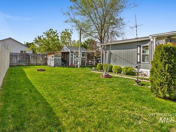 Centrally located in Boise! This lovely 3 bedroom, 2 bath Nashua Manufactured Home features vaulted ceilings, a split bedroom floor plan with roomy bedrooms and relaxing living space. Enjoy the large master suite and the big master bath with double sinks and a large shower tub. Spacious living room with an open concept feel, sizable dining space and a built-in breakfast bar. All appliances included. Comfortable covered porch, back deck, 12x10 storage shed and an immaculate landscaped yard. Close to shopping, restaurants and more. Lot rent is $565/month. Small animals allowed. This beautiful home is move-in ready!