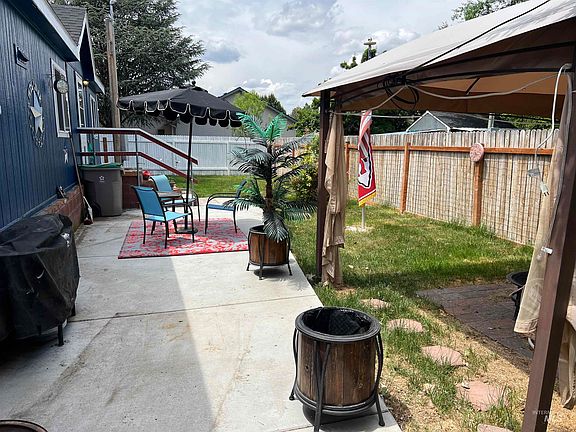 Convenient Boise Location! Updated double wide features a split floor plan with large Family Room and generously sized Primary Suite* Newer Kitchen appliances & Vinyl flooring*Fresh exterior paint and new roof(aug2022) Good sized covered carport with attached enclosed storage closet/shed* Oversized yard with grass, concrete patio and a big area for gardening