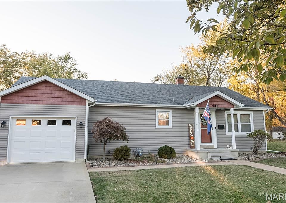 Welcome to this charming 2-bedroom, 2-bathroom home in the heart of Mascoutah. Built in 1950, the home features solid cherry wood cabinetry in the eat-in kitchen, original hardwood floors in the living room, and an expansive laundry room addition completed in 2015. The finished basement offers a versatile non-conforming third bedroom, office, or bonus space with an adjacent full bathroom and storage room. The attic provides additional storage space with the potential to be finished for even more usable living area. Enjoy the covered back patio overlooking the beautifully landscaped, well-manicured lawn—perfect for relaxing or entertaining. Recent updates include all updated electrical, HVAC and furnace (2021), water heater (2015), roof (~2010–2014), garage and laundry room addition (2015), front porch, new doors and trim, siding, covered back patio with ceiling fan (2015), newly replaced kitchen appliances (2024), and main level bathroom update (2025).