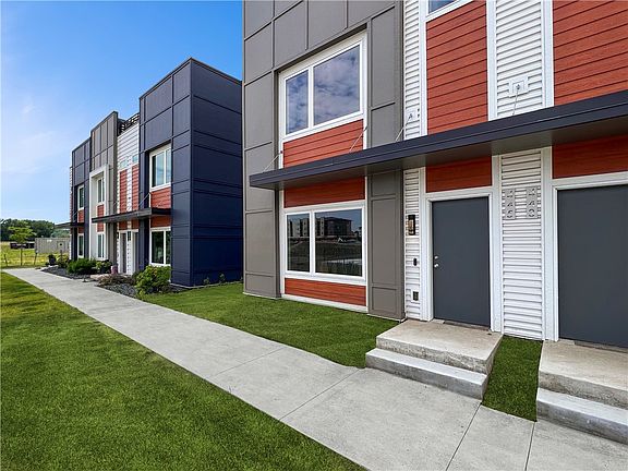 Home is MOVE IN READY - The popular Emden floor plan at Gray's Station. This outstanding downtown location is near everything. Directly off the biking/walking trails and bridge to Gray's Lake. This main level features open kitchen to great room with electric fireplace.  Large windows provide for lots of natural light. Finishing features include quartz countertops, tile backsplash, and LVP flooring. Upper level with bedrooms, laundry and upper access to FULL Roof Top PATIO! Walk to work, Hy-Vee downtown, Gray's lake, dining, baseball games, and the largest Farmer's Market is a plus and so much more. 6 year Tax Abatement available. Now - March 19 receive a $10,000 Hubbell Homes Incentive. Use our preferred lender and receive $1,750 towards closing cost. Not valid with any other offer and subject to change without notice.