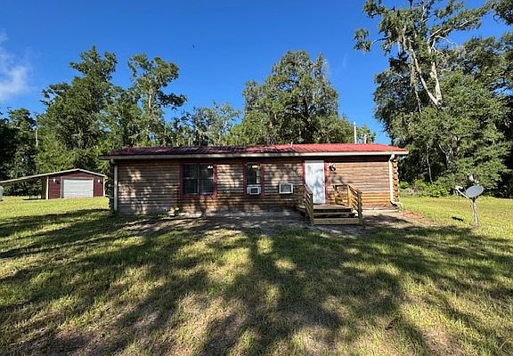 Peaceful 4.75-Acre Getaway Near Ichetucknee Springs – No HOA, No Restrictions! Escape to tranquility in this 2-bedroom, 2-bath modular home on 4.75 acres in Fort White, Florida — located in desirable Flood Zone X (no flood insurance required). This home offers the freedom of country living with no deed restrictions or HOA, just 3.8 miles (about a 6-minute drive) from the Ichetucknee Springs North Entrance. Enjoy the comfort of hardwood floors, a well and septic system, and a wall unit providing both heating and cooling. The kitchen area includes a microwave and refrigerator, and the layout offers a cozy, functional living space perfect for weekend getaways, full-time living, or vacation rental potential. Outside, you’ll find a 20’ x 25’ enclosed metal garage with a lean-to, ideal for storage, a workshop, or hobbies. The partially fenced property includes a manual gated entrance and sits on a county-maintained graded road, providing easy year-round access. With wide open space, mature trees, and unmatched proximity to some of Florida’s most beloved natural springs, this is your chance to own a slice of North Florida paradise!